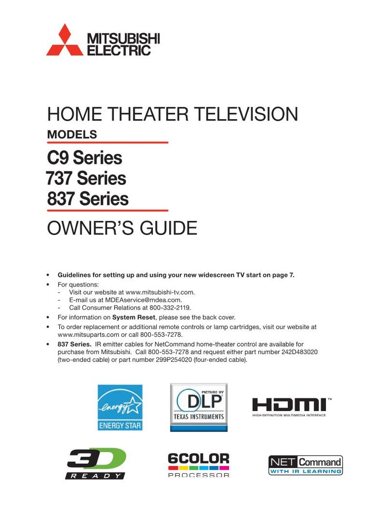 The Mitsubishi WD60737 WD60C9 WD65737 TV Operating Manual is originally supplied with TV models: Mitsubishi WD60737, Mitsubishi WD60C9, Mitsubishi WD65737, Mitsubishi WD65837, Mitsubishi WD65C9, Mitsubishi WD73737, Mitsubishi WD73837, Mitsubishi WD73C9, Mitsubishi WD82737, Mitsubishi WD82837