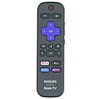 The RC-ALIR Roku TV remote control provides direct access to streaming apps with pre-programmed buttons for Netflix, Apple TV+, Paramount+, and HBOMAX. This IR-only remote is designed for Philips Roku TVs, requires no programming with compatible models, and does not support RF or voice functions.