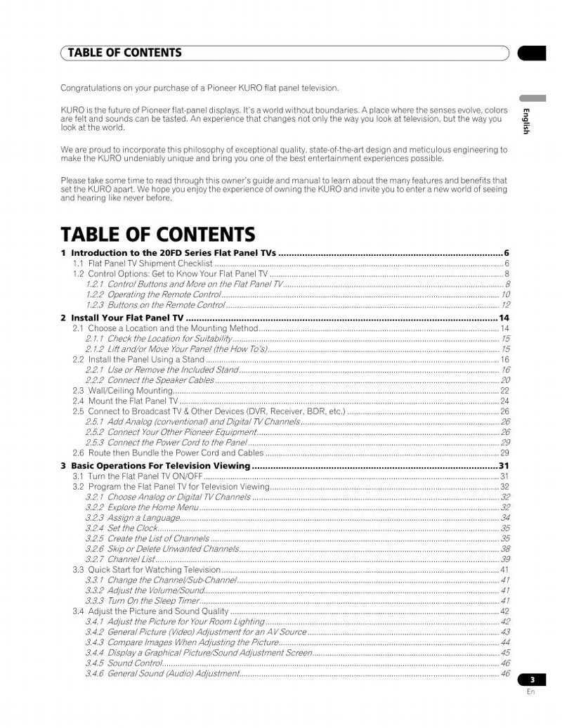 USER OPERATING MANUAL FOR Pioneer PDP5020FD TV