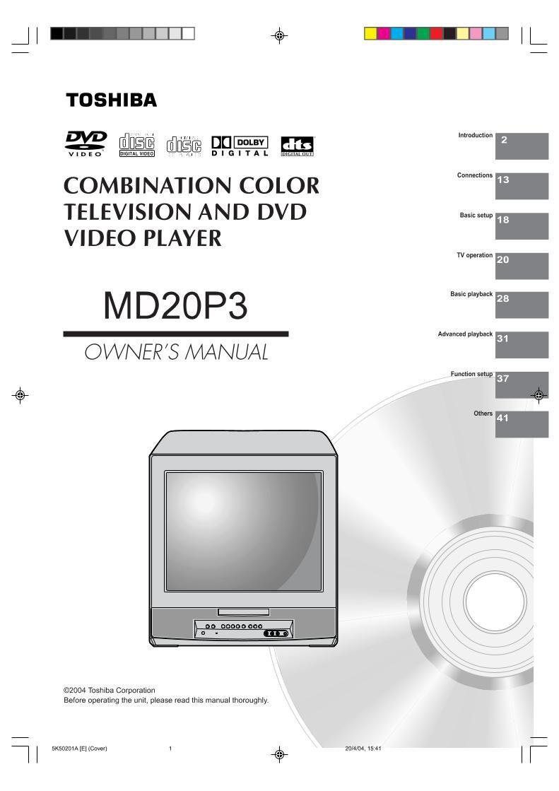The Toshiba DCFN20S DCSB1 MD13N1C TV/DVD Combo Operating Manual is originally supplied with TV/DVD Combo models: Toshiba 5K50201A, Toshiba DCFN20S, Toshiba DCSB1, Toshiba MD13N1C, Toshiba MD13N1R, Toshiba MD13N3, Toshiba MD13N3R, Toshiba MD13P1, Toshiba MD13P3, Toshiba MD13Q11 Toshiba MD13Q41 Toshiba MD14F11 Toshiba MD14F51 Toshiba MD14FN1 Toshiba md14fn1/p Toshiba md14fn1/p/r Toshiba md14fn1/r Toshiba MD14FP1 Toshiba MD19N1C Toshiba MD19N1R Toshiba MD19N3 Toshiba MD20F51 Toshiba MD20FN1 Toshiba MD20FN1C Toshiba MD20FN1CR Toshiba MD20FN1R Toshiba MD20FN3 Toshiba MD20FN3R Toshiba MD20FP1 Toshiba MD20FP3 Toshiba MD20P1 Toshiba MD20P3 Toshiba MD20Q41 Toshiba MD24F51 Toshiba MD24FP1 Toshiba MD9DP1
